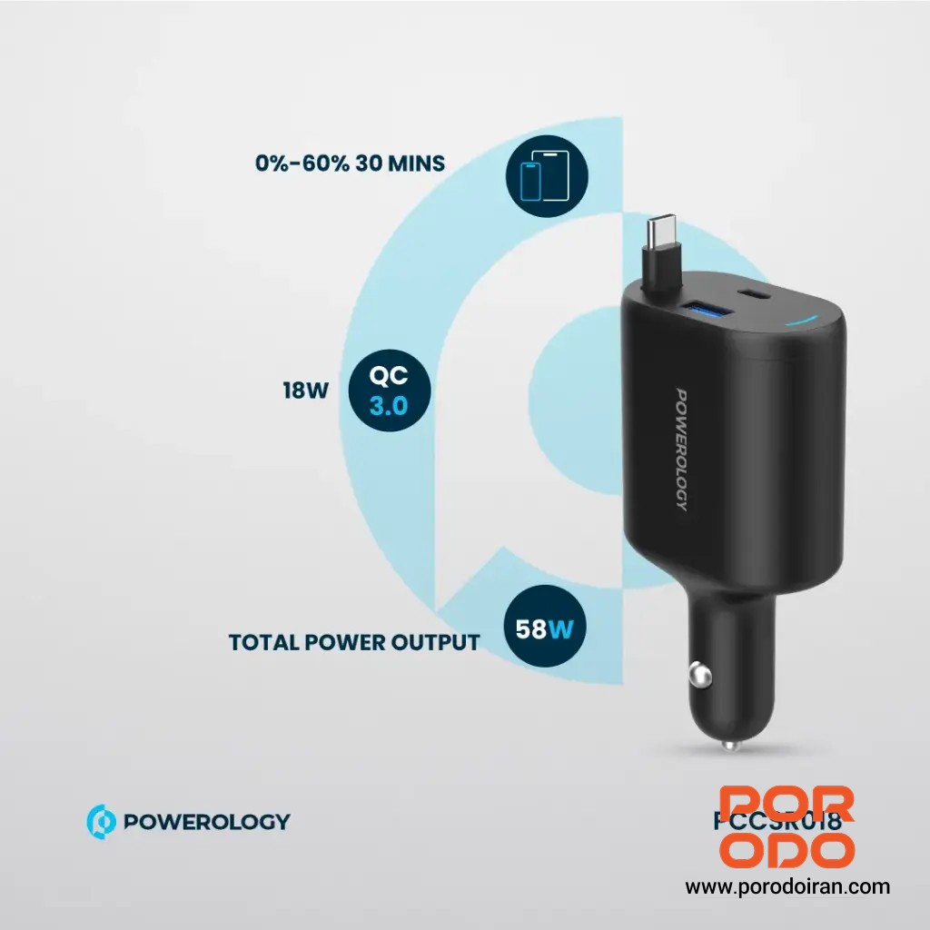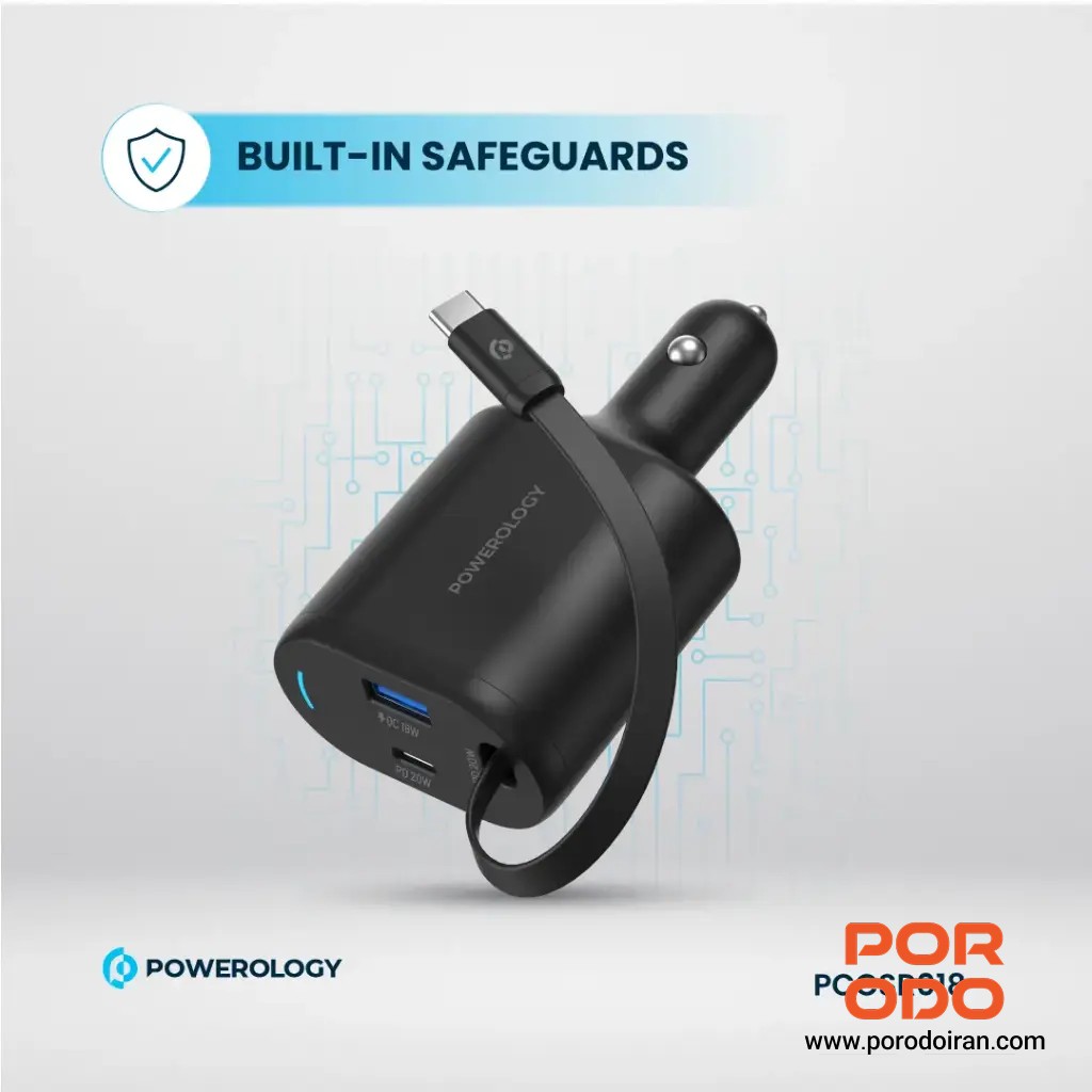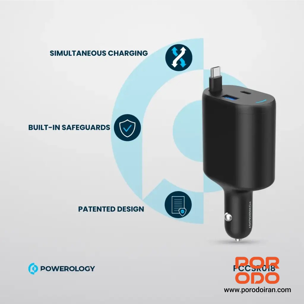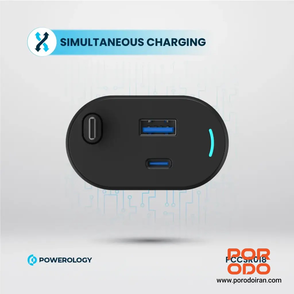 شارژر پاورولوژی با ورودی DC 12/24V به‌راحتی با تمامی خودروها سازگار است. خروجی‌های متنوع آن شامل USB-A با توان حداکثر ۳۰ وات و دو پورت USB-C با توان ۲۰ وات هستند که در مجموع توان خروجی فوق‌العاده ۷۰ وات را ارائه می‌دهند. این یعنی می‌توانید هم‌زمان سه دستگاه را با سرعت بالا شارژ کنید، بدون نگرانی از افت توان یا داغ شدن.