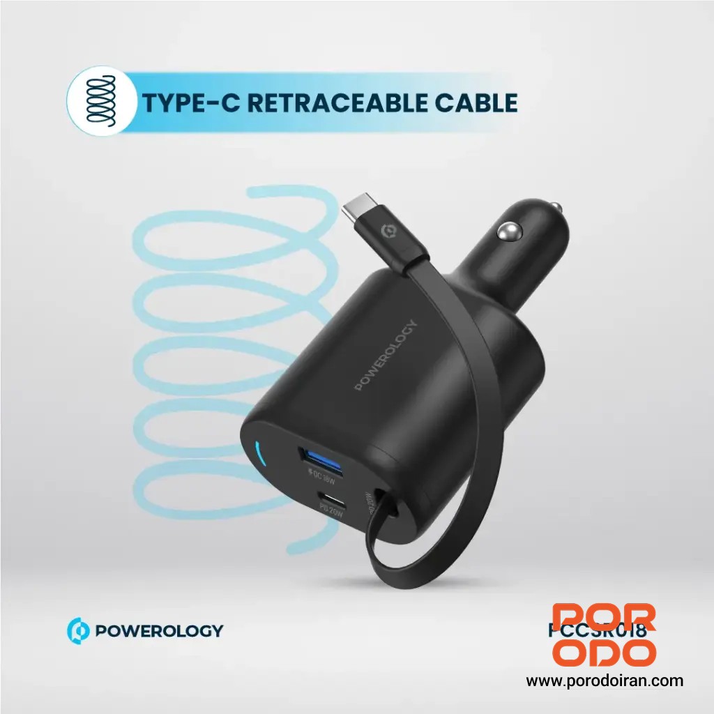 شارژرفندکی 70 وات با کابل تایپ C پاورولوژی مدل PCCSR018