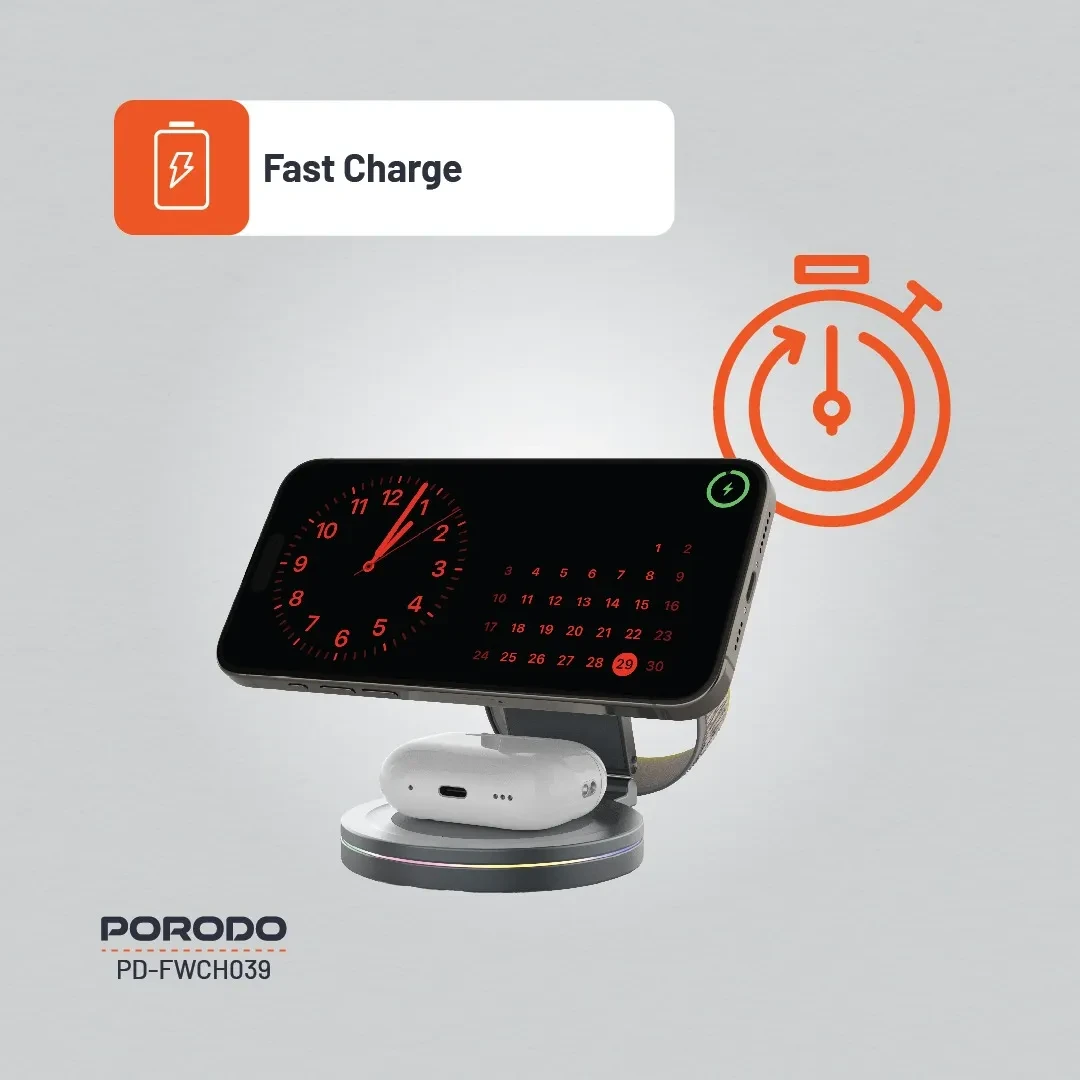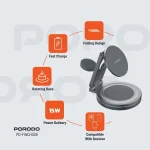 شارژر بیسیم سهکاره Porodo با پایه چرخان پرودو مدل FWC039
