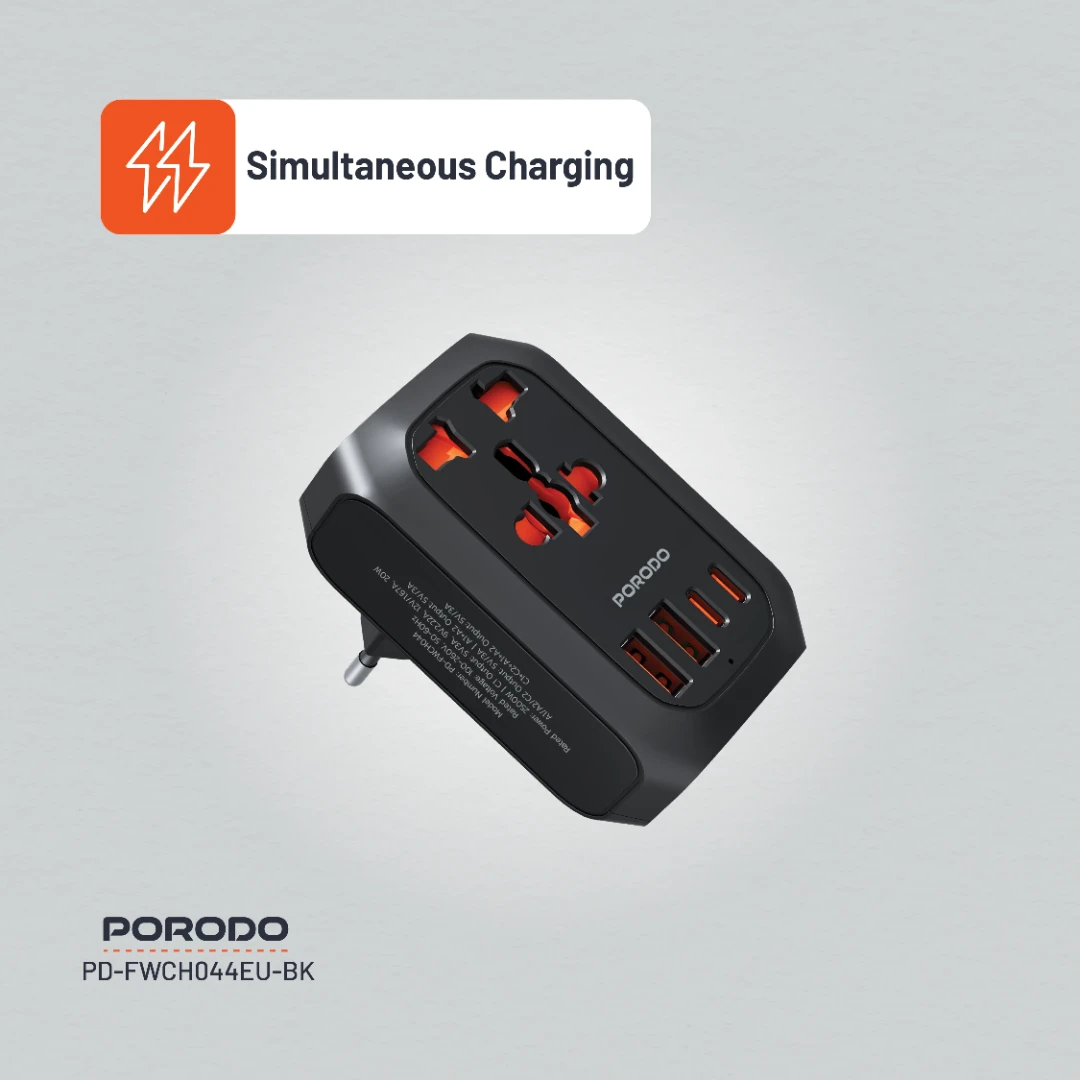 آداپتور برق متناوب Porodo Universal یک راهکار شارژ همهکاره و کارآمد است که میتواند تقریباً به تمام دستگاههای کاربران مدرن چند دستگاهی خدماترسانی کند. این آداپتور دارای یک سوکت جهانی و یک دوشاخه EU برای محدوده ولتاژ ورودی گسترده ۱۰۰-۲۶۰ ولت و فرکانس ۵۰/۶۰ هرتز است، بنابراین در مناطق مختلف قابل استفاده است. این آداپتور دارای چندین پورت خروجی، از جمله USB-C و USB-A، با خروجی کلی ۵ ولت/۳ آمپر و تا ۲۰ وات در پورت C1 برای شارژ سریع است. این آداپتور امکان شارژ همزمان چندین دستگاه را با راحتی و کارایی برای تلفنهای هوشمند، تبلتها و سایر گجتها فراهم میکند. با توان نامی ۲۵۰۰ وات، برای دستگاههای کوچک و پرمصرف عالی است. شارژ بیش از حد، گرمای بیش از حد و محافظت در برابر اتصال کوتاه داخلی، ایمنی و قابلیت اطمینان را تضمین میکند. آداپتور Porodo جمع و جور و شیک برای خانه، محل کار یا سفر ایدهآل است. این آداپتور عملکرد ثابت و سازگاری جهانی را برای برآورده کردن تمام نیازهای شارژ شما فراهم میکند.