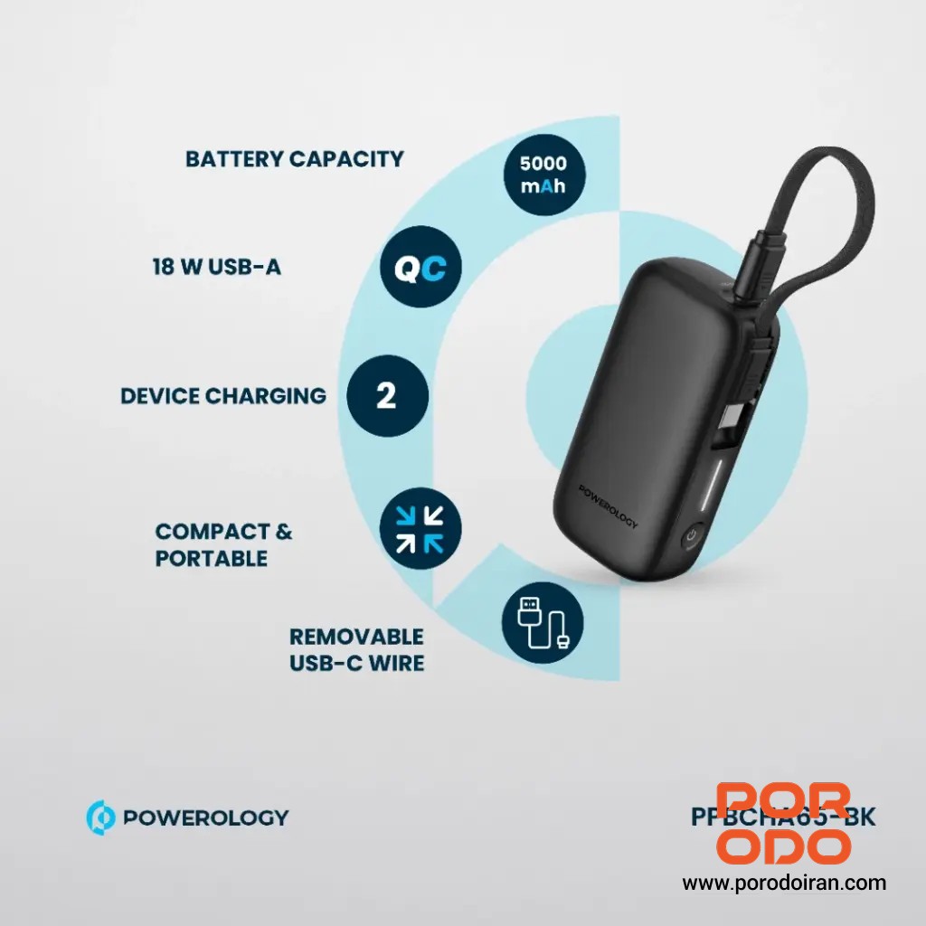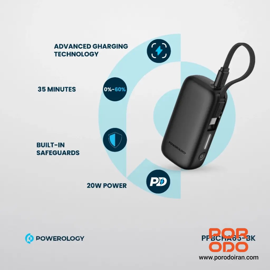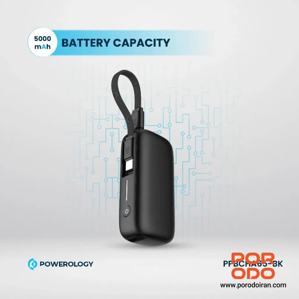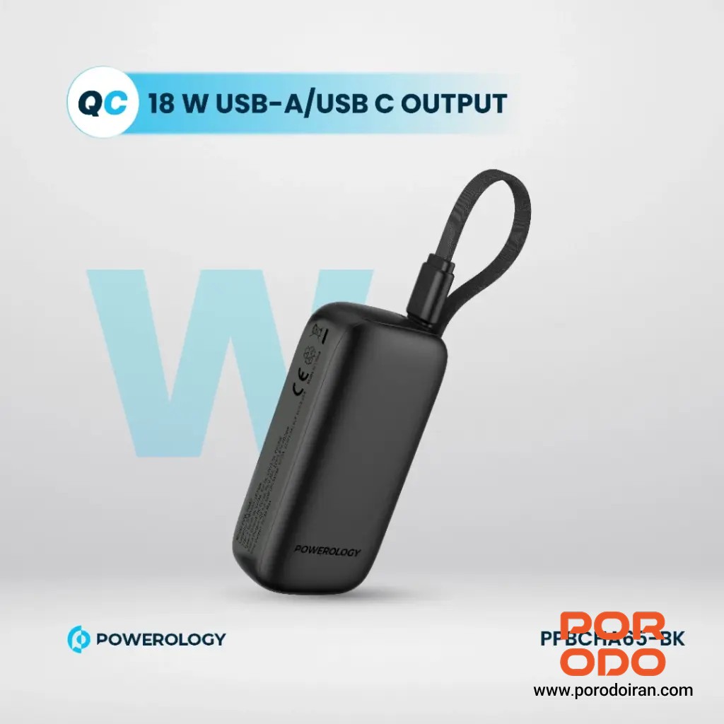 پاوربانک پاورولوژی مدل PPBCHA65-BK ظرفیت 5000 میلی آمپر ساعت توان 20 وات (مشکی)