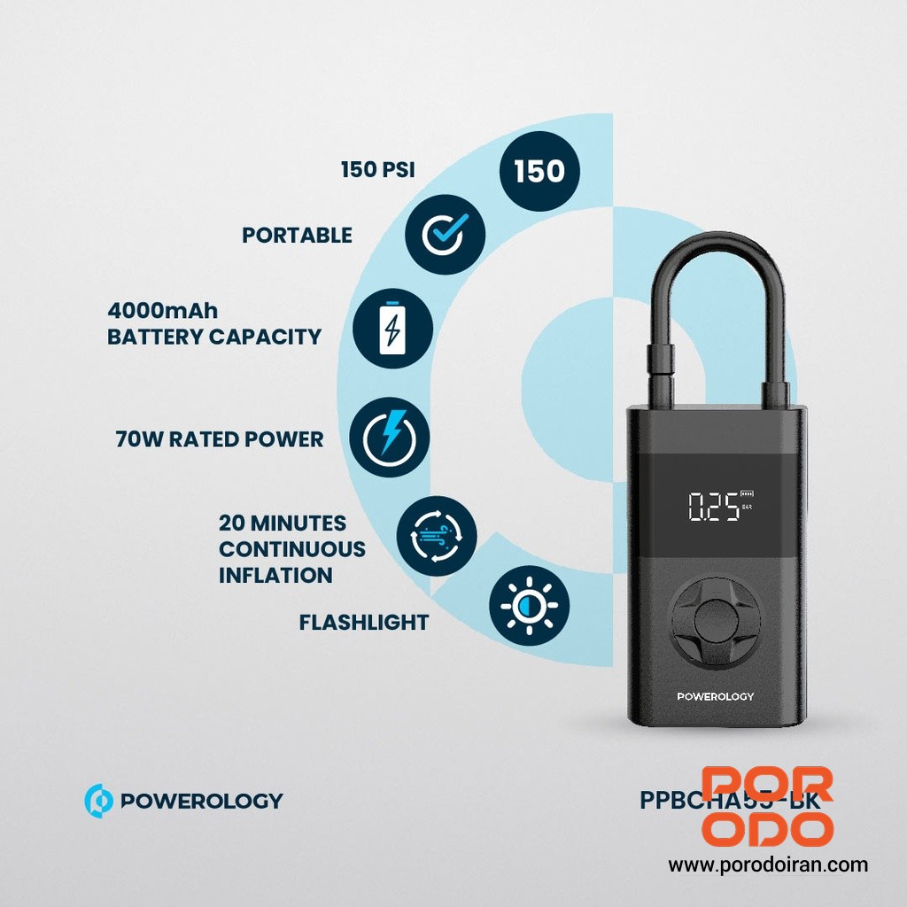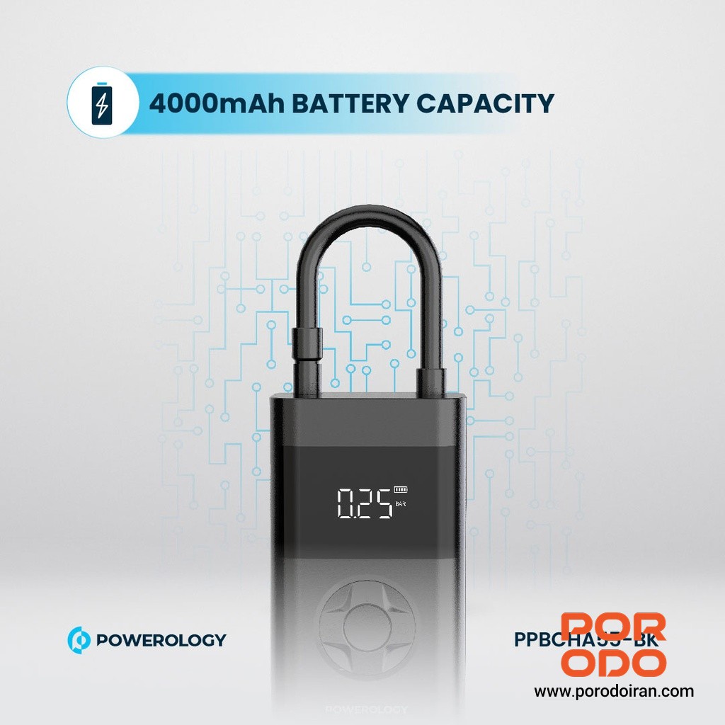 پمپ باد و پاوربانک پاورولوژی مدل PPBCHA55-BK ظرفیت 4000 میلی آمپر ساعت توان 70 وات